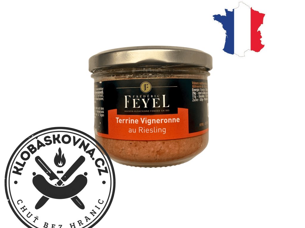 Tato alsaská terina je skutečným důkazem toho, že v jednoduchosti je krása. Základ tvoří poctivé vepřové maso a játra, která jsou vyšlehána do jemné, roztíratelné konzistence. To, co z ní dělá výjimečný zážitek, je však přídavek Ryzlinku rýnského. Toto bílé víno vnáší do hutnější chuti paštiky příjemnou kyselinku a ovocné tóny.