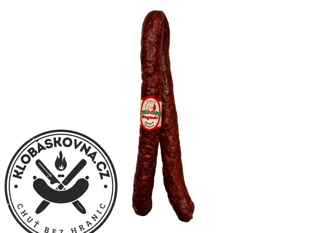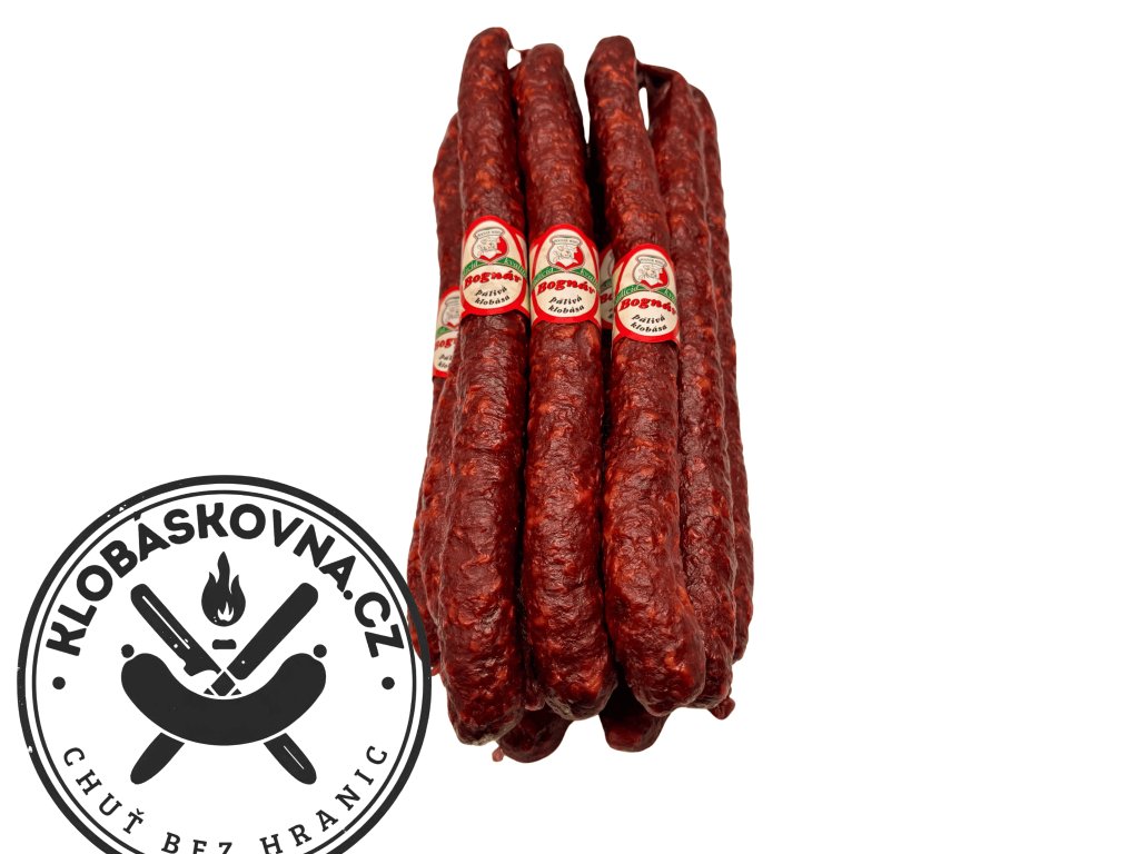 Prémiová klobása z prvotřídního masa, která vyniká tmavočervenou barvou, výraznou vůní a dokonale vyváženou pikantní chutí. Na řezu je červenohnědá s jemným tukovým zrněním, což prozrazuje poctivé ruční zpracování.