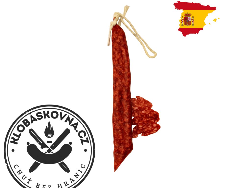 Vepřové maso a vepřový tuk původu ze Španělska, paprika, jedlá sůl, česnek, koření, antioxidanty (E301, extrakt z rozmarýnu) a konzervant (E250); jedlé vepřové střívko, povrchově ošetřeno konzervanty (E202, E235).