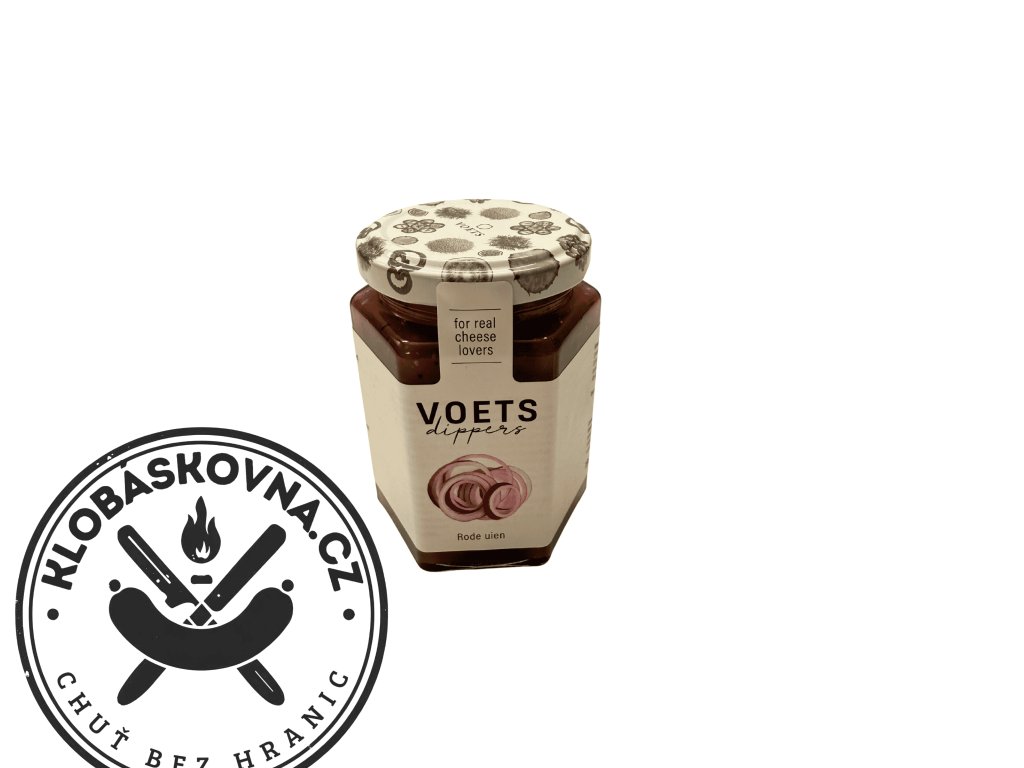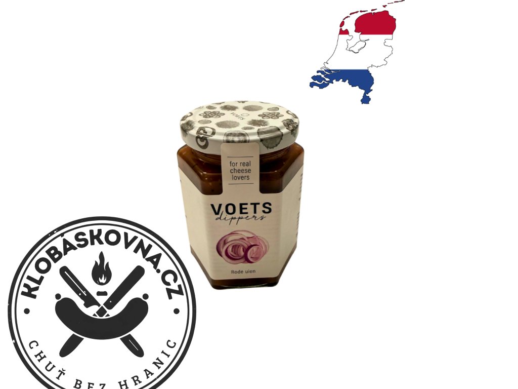 Voets Dippers – Rode uien je prémiový sladkokyselý dip z červené cibule, vytvořený speciálně jako doplněk k sýrům. Základ tvoří vysoký podíl červené cibule (36 %), doplněný o balzamikový ocet, med, zázvor, hořčičné semínko a jemnou směs koření.