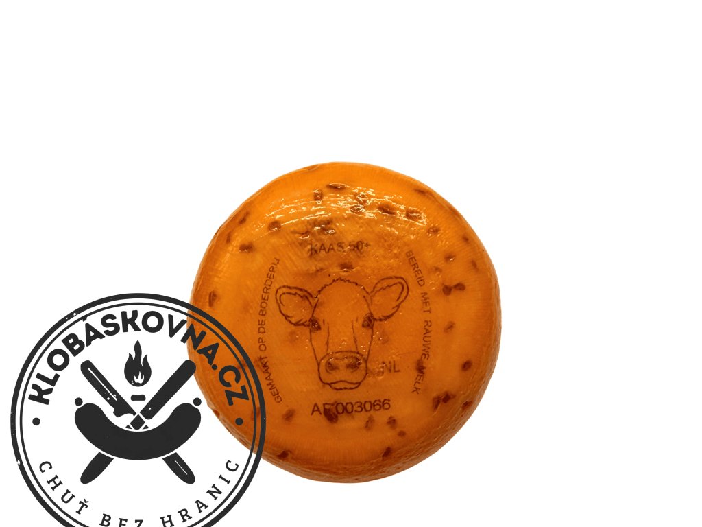 Tradiční farmářský holandský sýr s označením Boerenkaas, ručně vyráběný na statku z čerstvého nepasterizovaného kravského mléka. Pískavice (fenugreek) dodává sýru jemně oříškovou chuť a aromatické tóny. Skvělý k vínu i na sýrové prkénko. Originální produkt z Nizozemska.