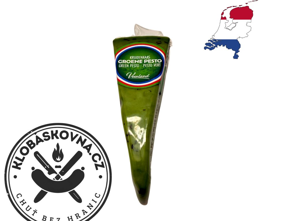 Zelené pesto 48+ je jemný holandský sýr s výraznou chutí bazalkového pesta. Krémová textura, plná sýrová chuť a svěží bylinkové tóny z něj dělají ideální sýr k vínu, pečivu i na sýrové mísy.
