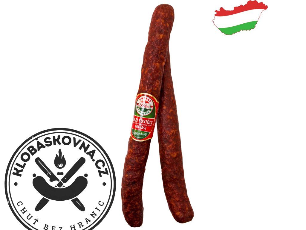 Klasická maďarská uzená klobása, která nesmí chybět v žádné kuchyni. Je vyrobena z poctivého vepřového masa a dochucena tradiční směsí koření, ve které vyniká Sladká paprika a česnek. Polosušená, tepelně neopracovaná delikatesa s příjemným uzeným aroma.