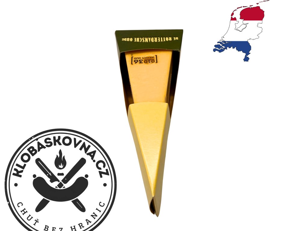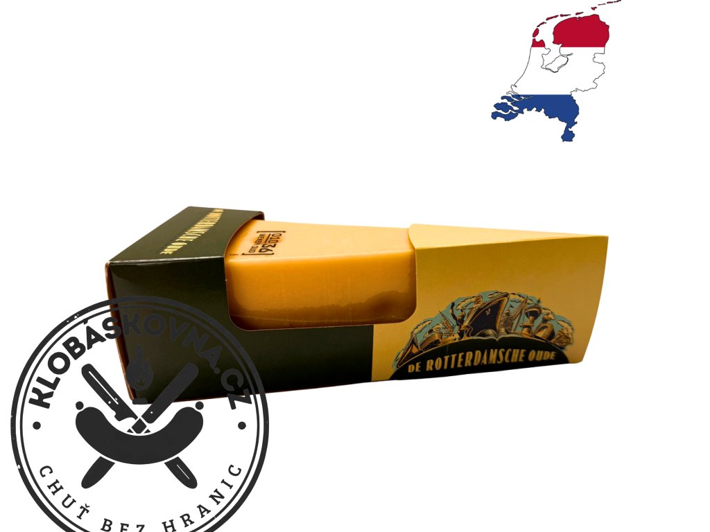 De Rotterdamsche Oude 48+ je výrazný holandský sýr zrající 36 týdnů. Plná, intenzivní chuť, lehce karamelové tóny a pevnější textura – ideální pro milovníky vyzrálých sýrů.