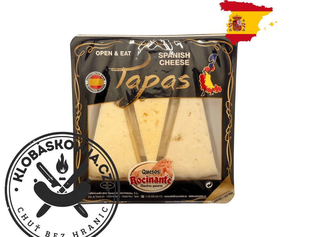 Výběr španělských tapas sýrů v praktickém balení. Kombinace ovčího Manchega, sýru Iberico a kozího sýra macerovaného v červeném víně. Ideální na tapas, sýrová prkénka a degustace.