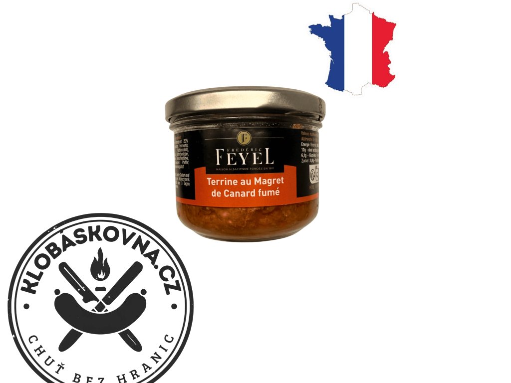 Zauzená terina z kachních prsou je tradiční francouzská specialita vyrobená z pečlivě vybraného kachního masa. Jemné zauzení podtrhuje přirozenou chuť masa a dodává terině elegantní aroma. Díky hladké konzistenci a vyváženému složení se skvěle hodí jako předkrm, na studené mísy, slavnostní pohoštění i gurmánské tapas. Ideální volba pro milovníky francouzské kuchyně a kvalitních masových delikates.
